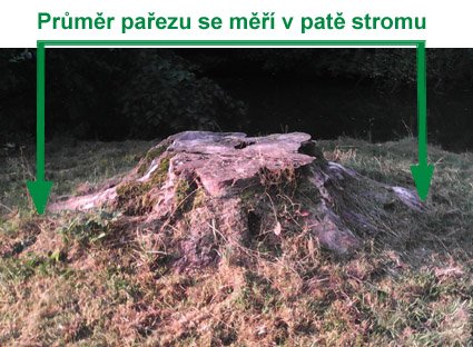 Průměr pařezu se měří v patě stromu, to je v úrovni terénu ...